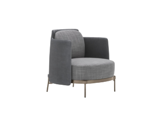 Kurve stands out with its sculpted, curved profile and plush fabric upholstery, elevated on sleek golden legs—an elegant accent seat that adds sophistication and comfort to modern living or lounge spaces.